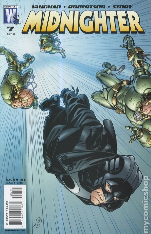 Writer Brian K. Vaughan (Ex Machina, Pride of BagHdad), and guest artist Darick Robertson (TRANSMETROPOLITAN) deliver an all-out action issue examining the Midnighter's abilities from a unique perspective. He's the man who can anticipate any move to the nth degree - now we get an idea of what that means.